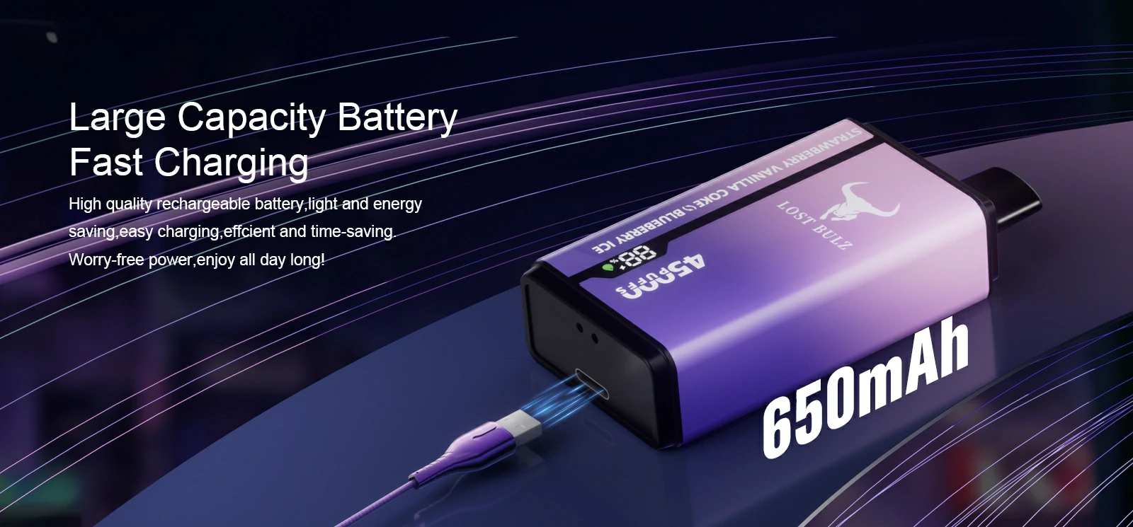 Najważniejsze cechy Lost Bulz V450💨 Do 45 000 puffów – wyjątkowo długa wydajność